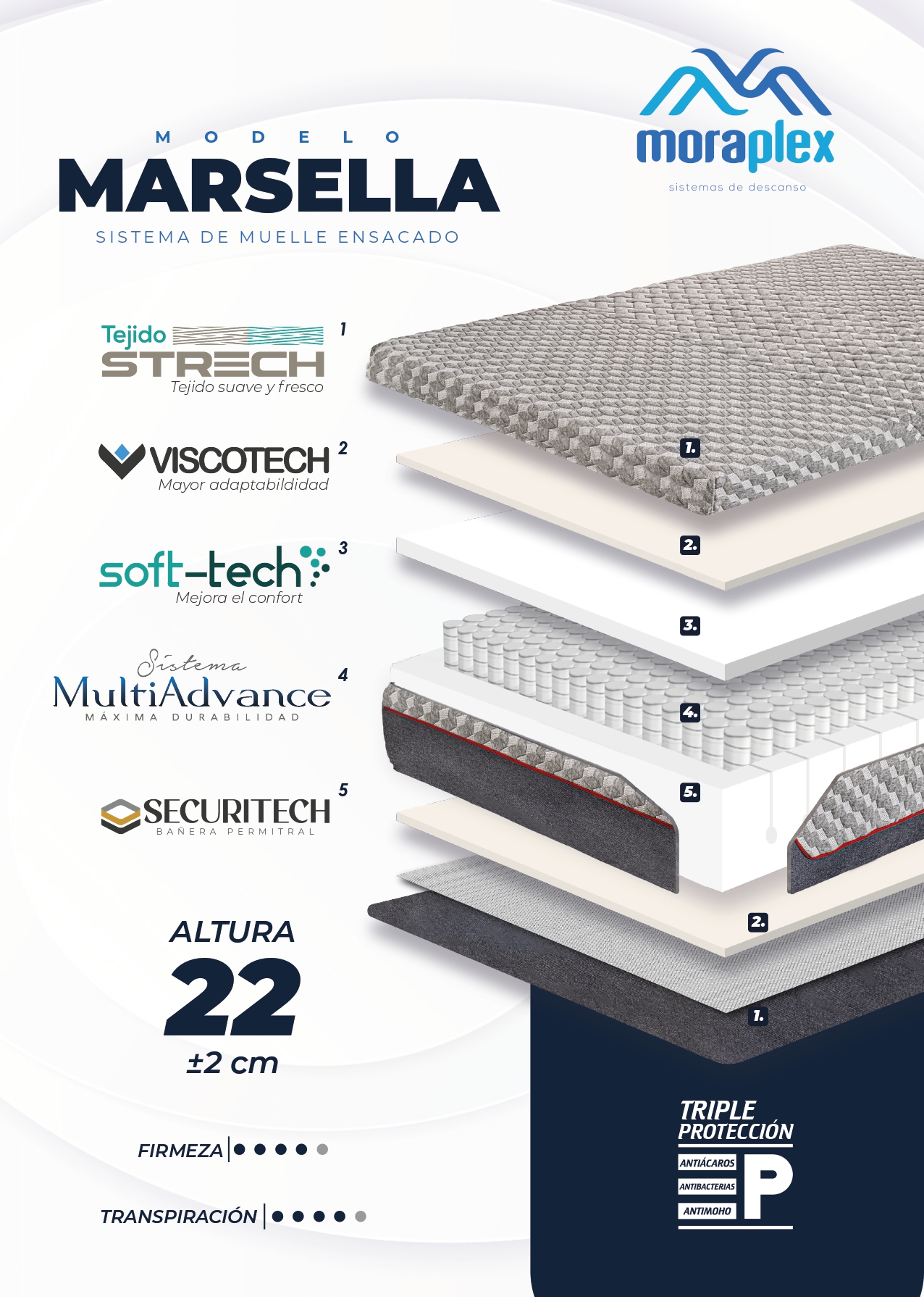 El modelo MARSELLA integra capas de confort diseñadas para mejorar la sensación de descanso:
